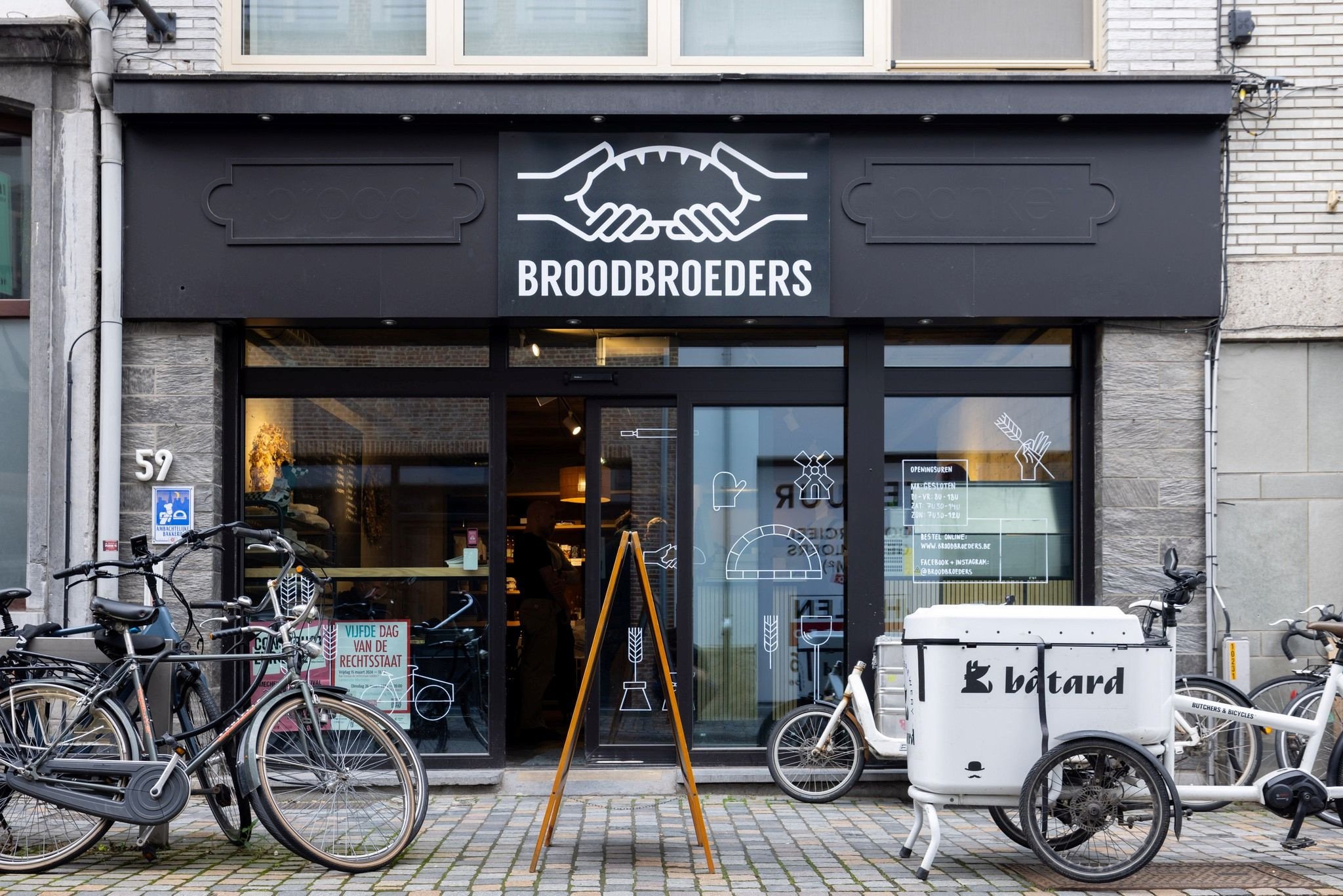 Broodbroeders is een ambachtelijke bakkerij met heerlijk brood, broodjes, gebak en koffie (di t/m do 08:00>>18:00, vrij 07:30>>20:30, za 07:30>>14:00 en zo 07:30>>12:00). Sint-Katelijnestraat 59