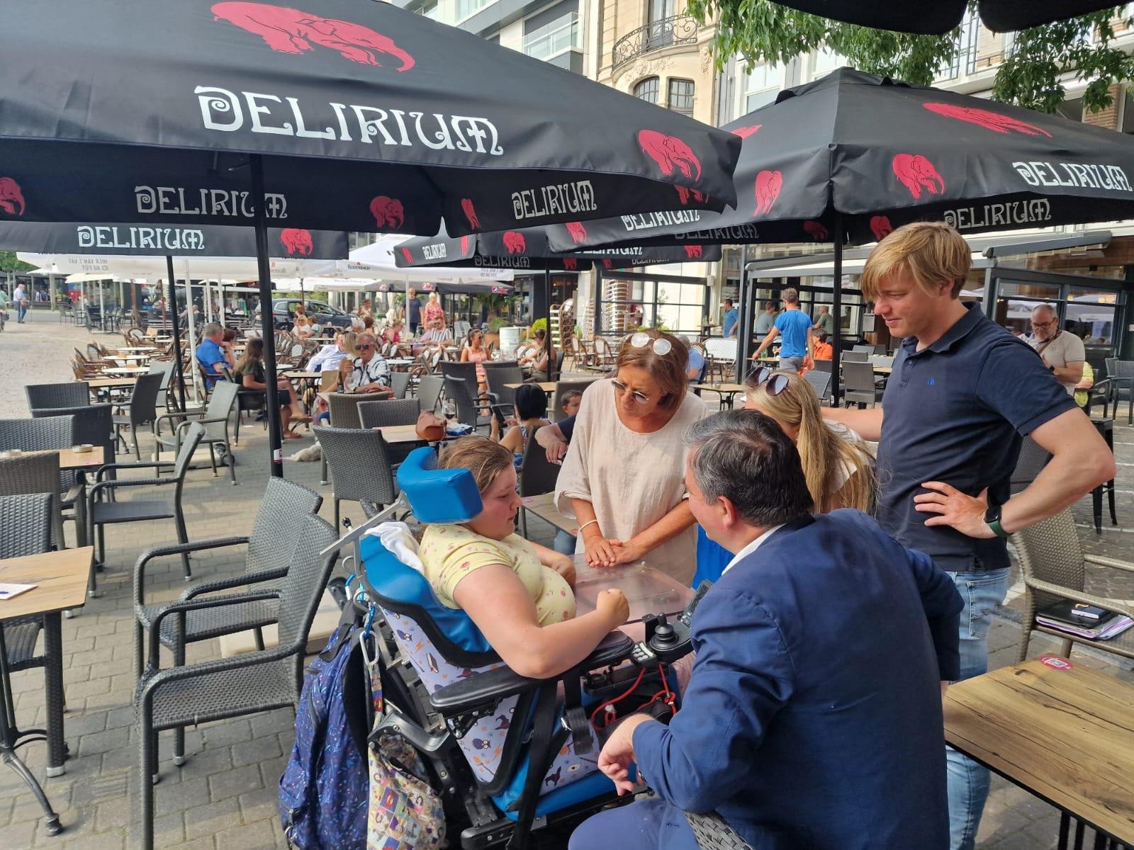 Tijdens de week van Klein Gebaar, Fijn Moment hebben we met Enchanté Vlaanderen doorkruist om mensen met elkaar te verbinden. Op de Grote Markt in Roeselare en het Zomerkriebels event in Veurne stonden we stil bij het leven met een fysieke beperking. Hier moedigden we burgers aan om hartverwarmende kaartjes te schrijven voor mensen die leven met een fysieke beperking. We nodigden ook Noa uit, die als ervaringsdeskundige vol enthousiasme naar de Grote Markt van Roeselare kwam. Noa deelt haar warme woorden over deze bijzondere dag.